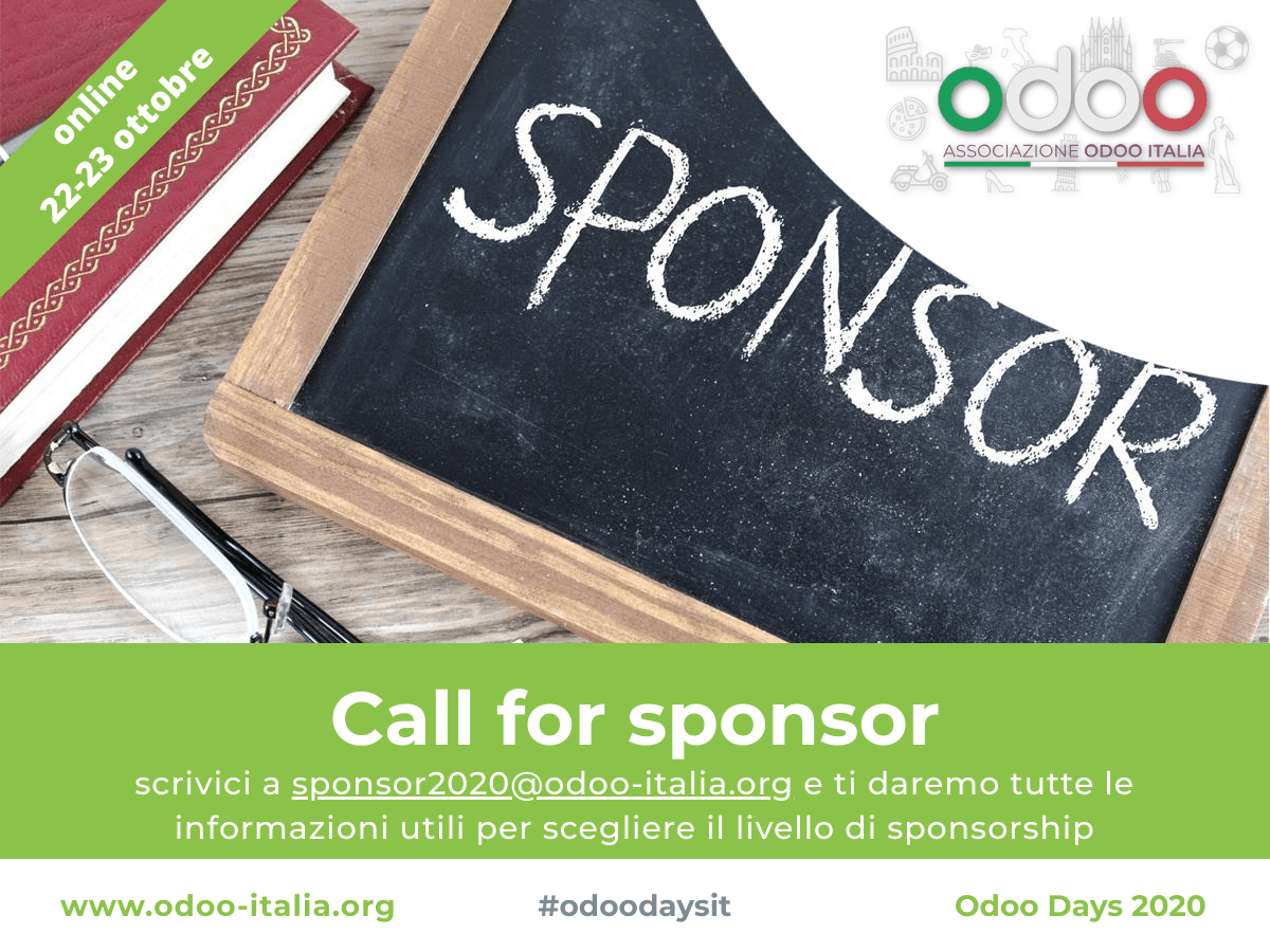 È inoltre aperta la call for sponsor dedicata alle aziende che vogliono sostenere l'evento e le attività dell'associazione, per informazioni scrivere a sponsor2020@odoo-italia.org